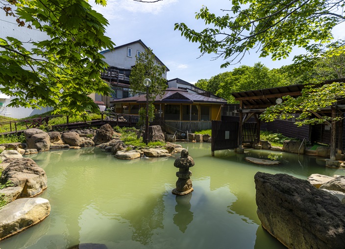 お肌がしっとり・すべすべになると言われる「美肌の湯」を源泉掛け流しで。自家源泉の2種類の温泉を惜しみなく浴槽へ注ぎます。男女別の浴場のほか、ニセコ昆布温泉郷で広さ最大級の露天風呂は混浴でお楽しみいただけます。